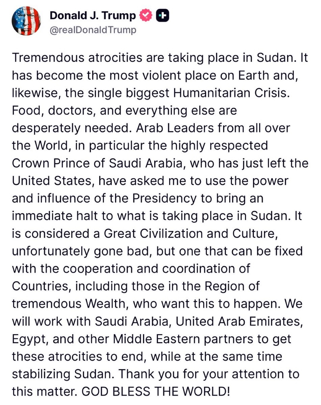 It is stuff like this that makes me think Trump won’t get back on track. Excuse my language here, but I do not give a fuck about the Middle East or Africa at all. Like literally not at all. I could wake up tomorrow and open X and see that the entire region was obliterated by a meteor and I would not care.
