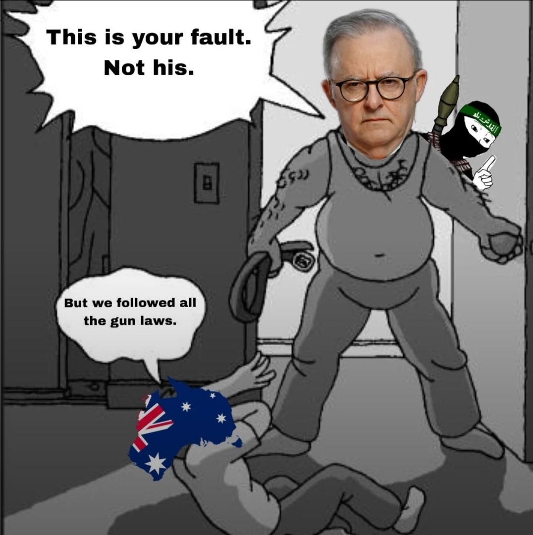 So that terror attack happens in Australia on Monday. 15 people are killed. It's a radical Islamist. But it's 🫵 fault. Imma strict up these gun laws🤨