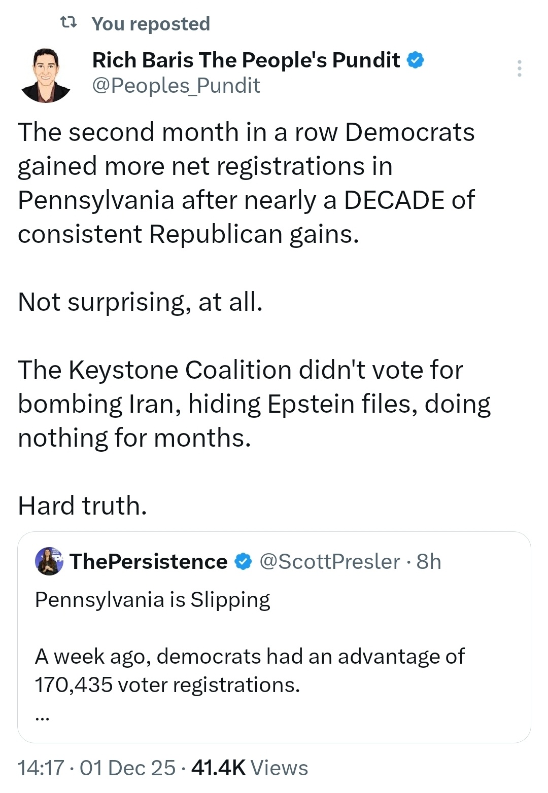 Seems the gains and the coalition in the keystone state aren't worth keeping to you, Narco Rubio, Tel Aviv Ted, Soro Scotty Bessant, SwampySusie and that fatass fireplug Randy Fine.