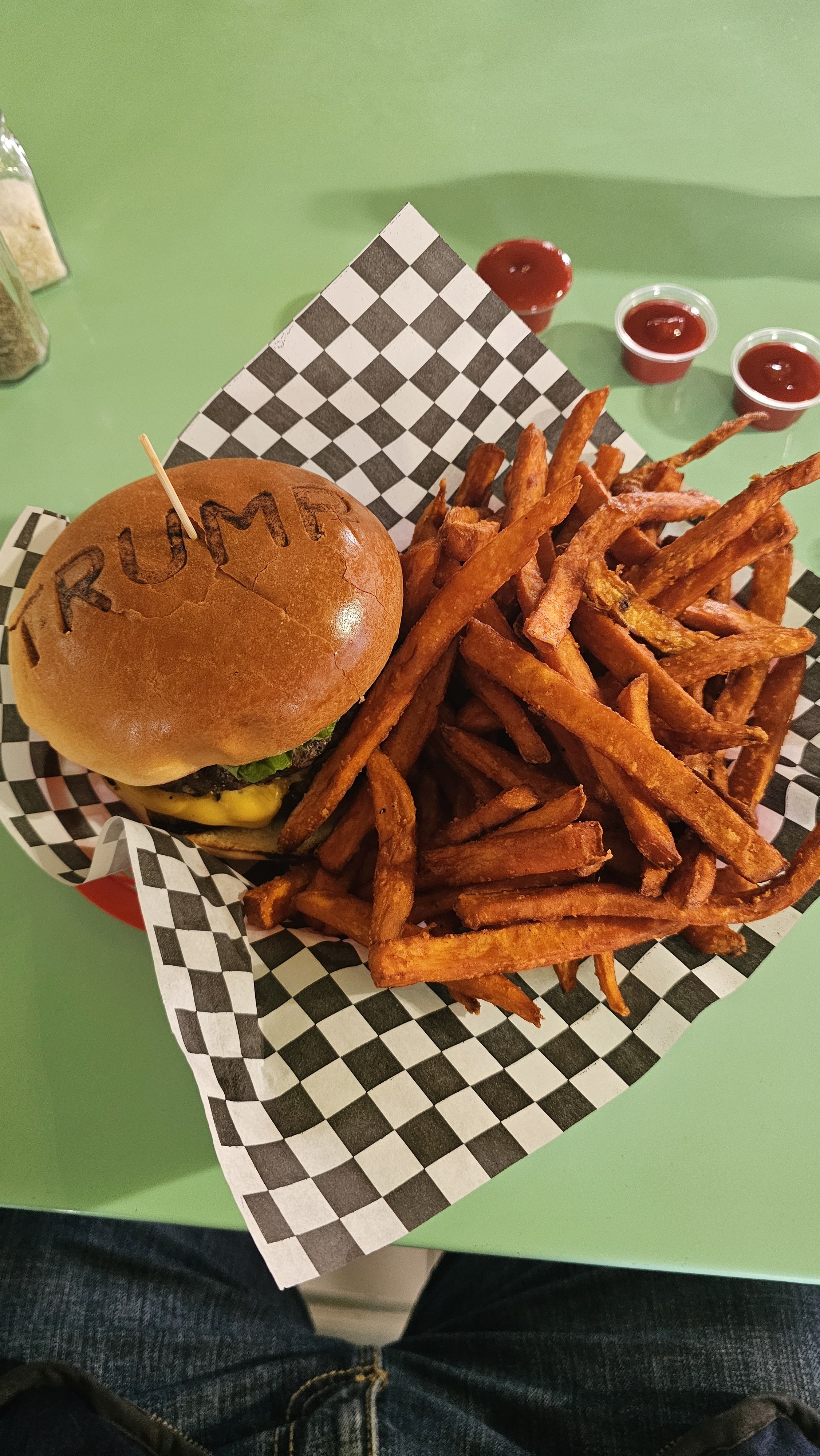 I had an appriasal out in Bellville and thought id stop by Trump Burger. The place has changed alot since ive been there last. I ordered a burger and fries (which I eventually got) but then the cashier proudly started bragging that my order included dropping ordinance on Iran...which I did not order 😔