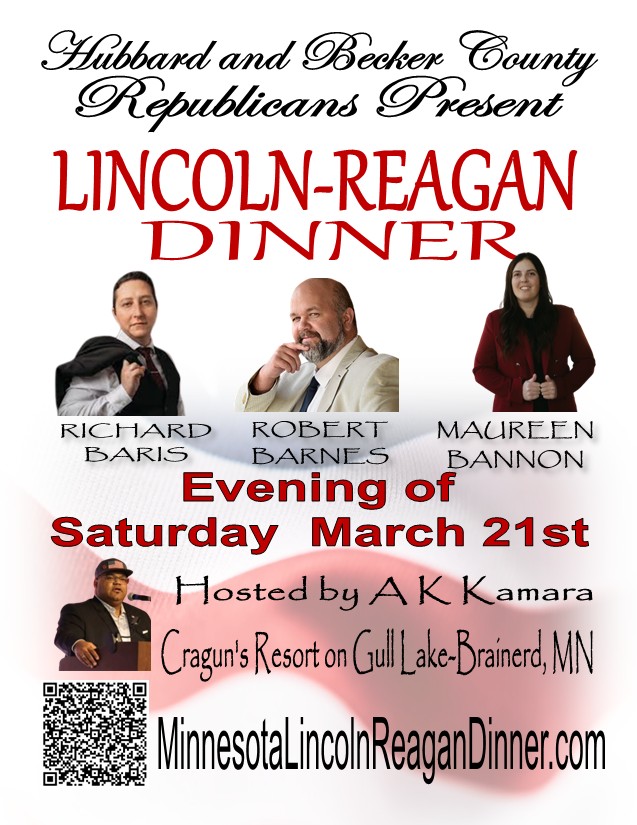 BUY NOW!!!! BUY BEFORE MARCH1st a general admission ticket to the Minnesota Lincoln Reagan Dinner in beautiful Brainerd, Minnesota you will be entered to win 1 of 30 pairs of VIP tickets to the event which includes a personal meet and greet with Robert Barnes, Richard Baris and Maureen Bannon. And you will also be entered to win one of 9 pairs of seats to sit with either Robert, Richard, or Maureen for the whole dinner. Buy now at www.MinnesotaLincolnReaganDinner.com Deal ends March 1st at Midnight.
