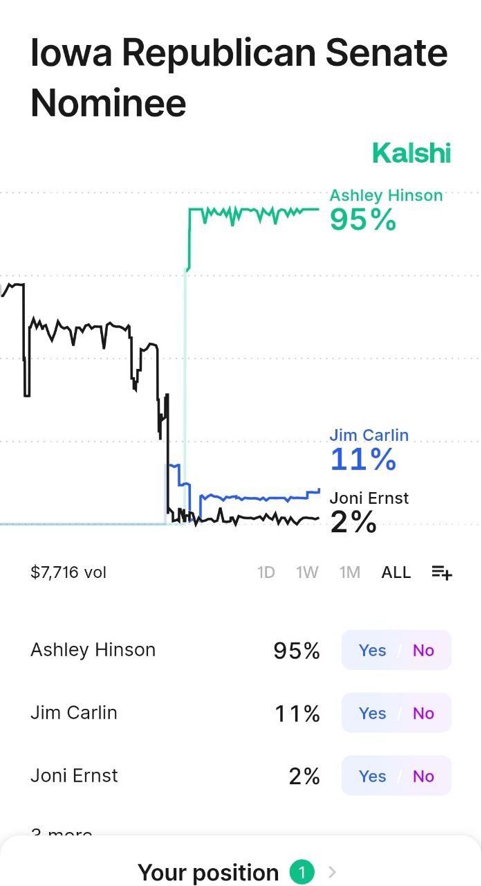 Jim Carlin’s odds on Kalshi are way off. He’s sitting around 11% while Hinson is trading near 95%, and that doesn’t match what’s actually going on in the state. Based on his last run, the regional breakdown, and how the base feels about Hinson, I’ve got him closer to a 30–35% shot.